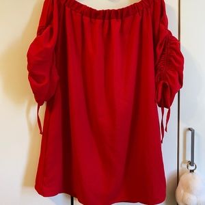Never worn off shoulder Red mini dress - extremely stretchy flowy material