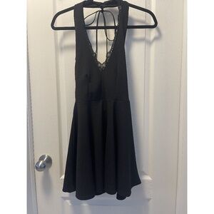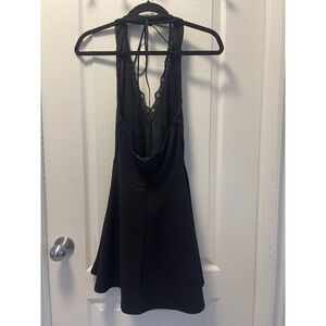 Boohoo Petite Lace Trim Halter Plunge Skater Dress