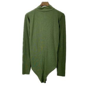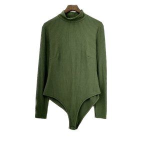 Boohoo Ribbed High Neck Green Bodysuit Size 46