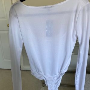 Brand new Boohoo ruched white long sleeve bodysuit in a size USA 12/UK 16. It has never been worn and has original the original tag attached.