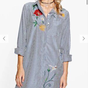 Boohoo Striped Embroidered Floral Dress