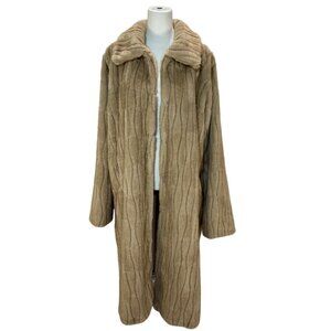 Boohoo Tan Ribbed Faux Fur Maxi Long Coat, Size US 8, Outerwear