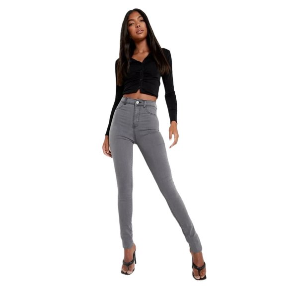 Features - 100% Cotton - High Waist - Color: Gray - Machine wash Sizing Size Waist Hips 4 26 35.5