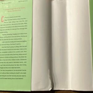 Hardcover edition of 'Fangirl' by Rainbow Rowell. Features a green cover with colorful illustrations. Book sleeve has a tear in it as seen in photos