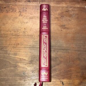Elegant red leather bound edition of 'The Call of the Wild' by Jack London.