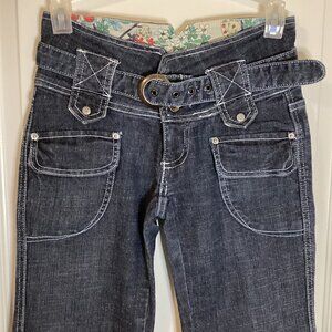 Boom Boom Women's Denim Jeans With Belt Pants Size 1 Bell Legs Hippie Y2K