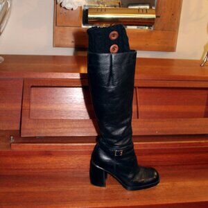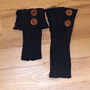 A great way to add just a bit of a change for days when you want it without fully committing to it . Each boot black cuff is adorned with wooden buttons. The stretchy acrylic cable knit weave fits nicely a 4-10 These cuffs can be worn in two ways allowing for calf circumference. The added bunos is that they keep you warm by keeping the drafts down while looking great