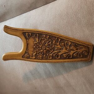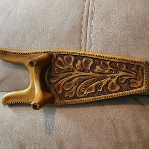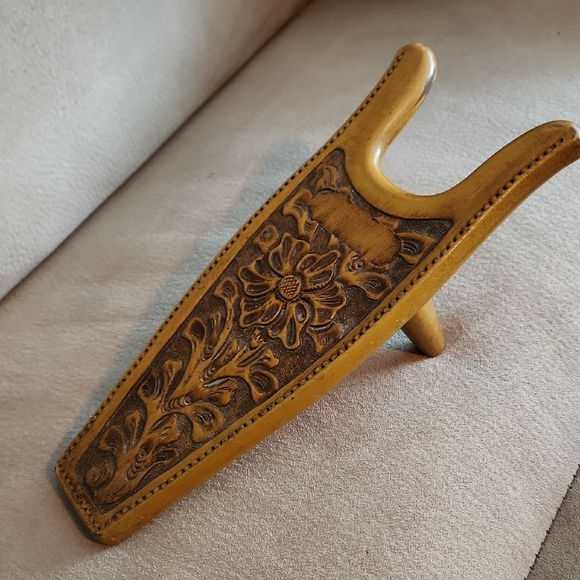 resin or plastic construction...used good condition 10.25 in long .4 in wide .. the boot jack opening is 2 1/4 to 1 3/4 in ...