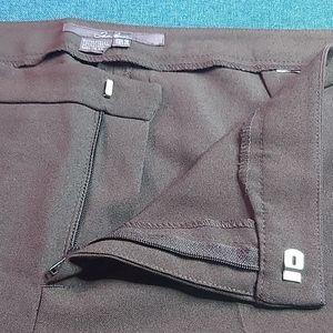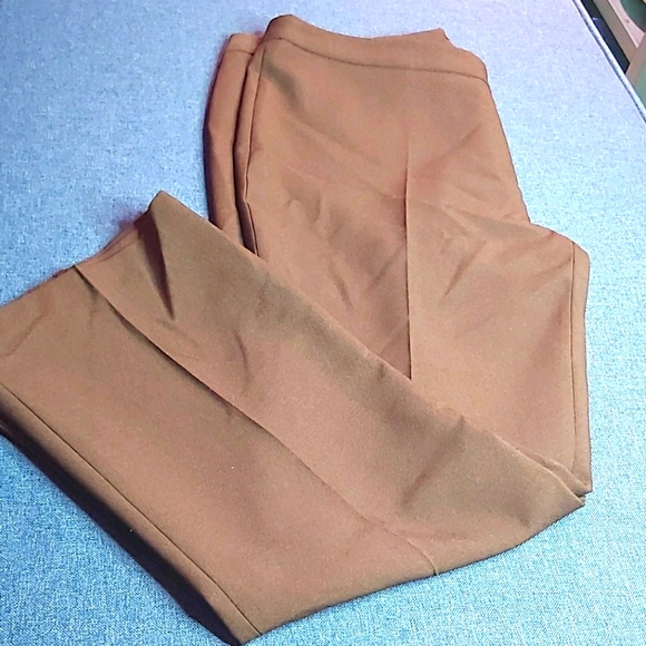 Basic chocolate brown bootcut zippered fly pants. Small 1 inch slits on either side of edge of pants. BNWOT.