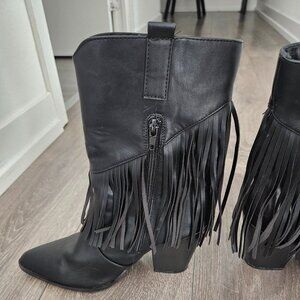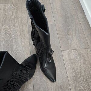 Faux leather, warm inner lining with tassle and side zip. Low heel. Size 38
