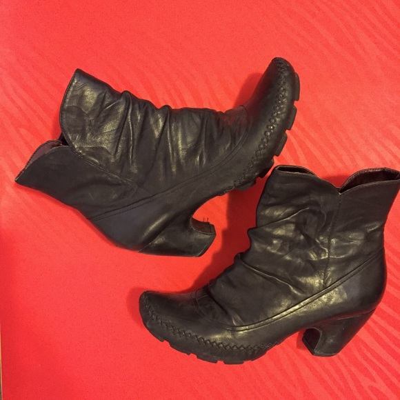 Cute black bootie by Indigo. Leather upper. Size 9. 6” shaft. 2-1/2 “ heel. Good tread