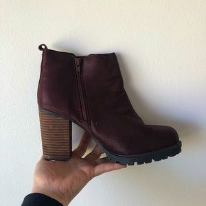 Only worn once. Very cute and comfy. I loooove these but I’m the same height as my fiancée so I can’t wear heels anymore. 🥲 nice burgundy colour with brown heel.