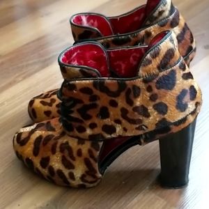 Nine West booties with peep sides, cheetah print, originally size 6.5US, true size after stretching 7US. Inside the shoes is leather but a bit damage due to stretch.