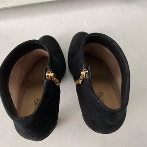 Michael Kors block heel booties in black suede with gold detailing on the back. Bootie is a size 6 and in good condition. Super comfortable and a great compsnion for every outfit for a night on the town.