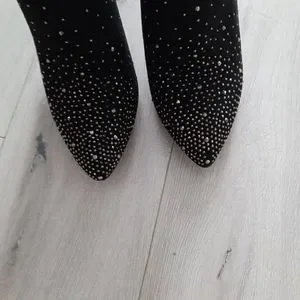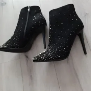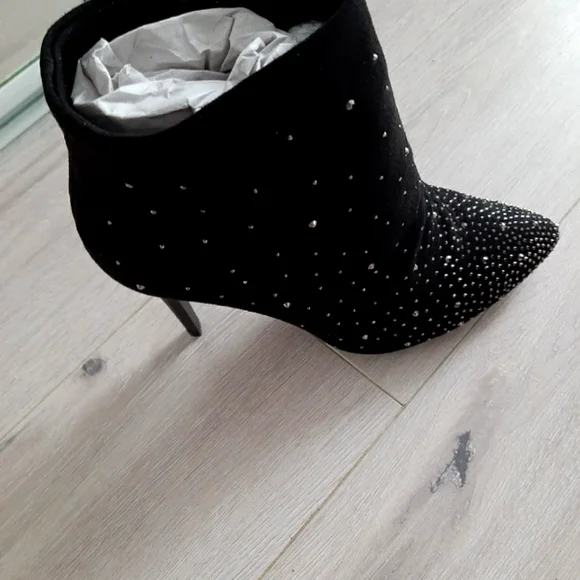 new, suede with black and silver rhinestones