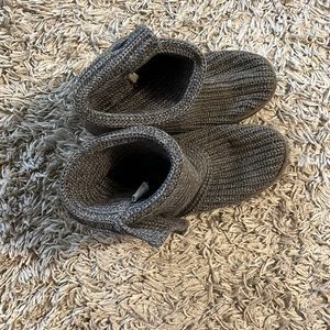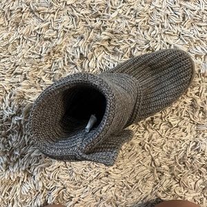 Ugh sweater booties. Used condition. Has some Shredding of the threading on side. But otherwise, they are in good condition.