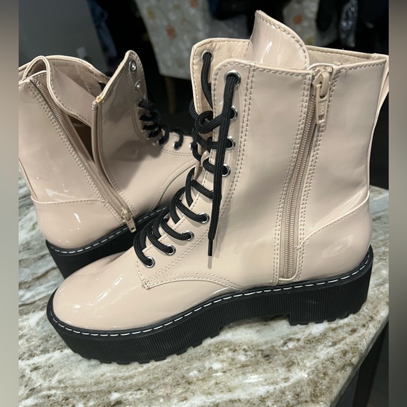 Divided brand, boots, shiny beige, size 10 Brand new , chunky sole,