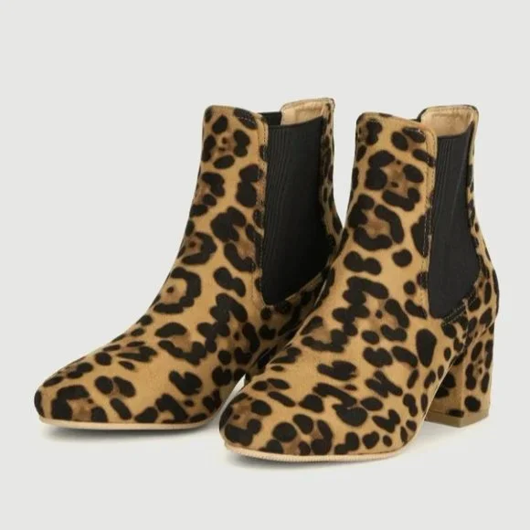 Brand New! These are an elastic leopard ankle bootie. I was going through a leopard print phase and bought A LOT, a lot of leopard print. A little bit too much leopard print, if you ask me. These have never been worn outside. I will post pictures of the soles for you as well. I bought them on a whim and realized that I already had about 20 other pairs of boots exactly like them. They are a size 7 North American or a 37 European.