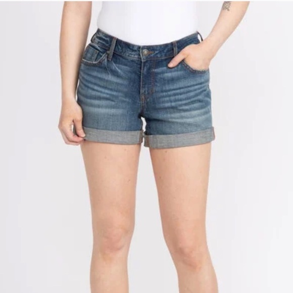 Bootlegger Boyfriend Fit Mid Rise Denim Stretch Cuffed Hem Jean Shorts