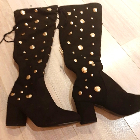 new boots,suede,gold studs,zip in the back,