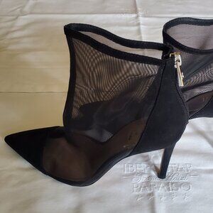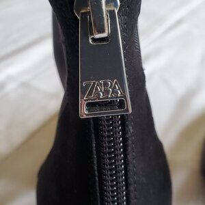 Zara high heel booties. Black in color, mesh fabric. The size is 7. There is a zipper up back heel. Barely worn.