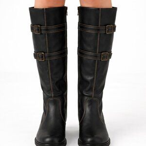 Martino riding boots, women’s black tall boots, faux leather buckle boots, equestrian fashion boots, size 10 winter boots, black fall boots, Martino footwear, tall women’s riding boots