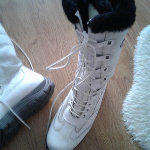All boots for sale white winter size 8 or 8.5 value 300$ ask 70 most new black Calvin's claim new sask 125$ very pretty unique black boots Italian realm fur inside excellent condition size 7 leather boots ask 35$ use but most new