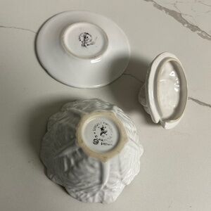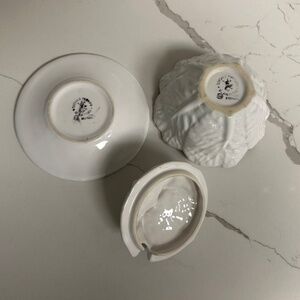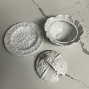 Bordallo Pinheiro Cabbage Leaf Ceramic Gravy Boat/ Tureen & Plate White