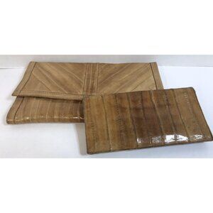 Borim Clutch Purse Rare Real EEL Skin Tan Vintage + Bonus Matching Wallet