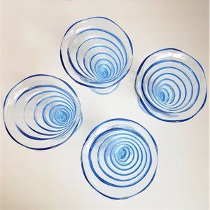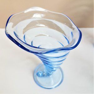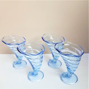 Beautiful Bormioli set of 4 large ice cream sundae or fruit blue glasses. They are 7'' tall. Made in Italy. Excellent condition.