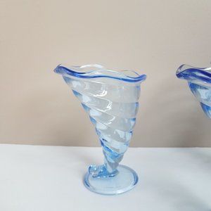 Bormioli 4 ice cream sundae fruit blue glasses.