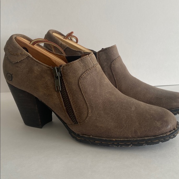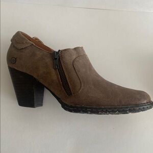 Leather Born ankle boot. Size 7.5. 2.5”heel with side zip and elastic stretch side pleat for the perfect and comfortable fit. In very good used condition