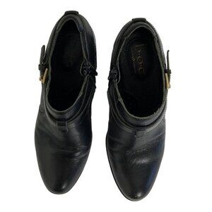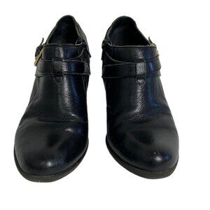 Born BOC Black Ankle Boots Heeled Size 7 Style Z01503 Leather Strap Buckle Y2K