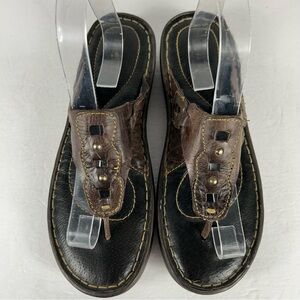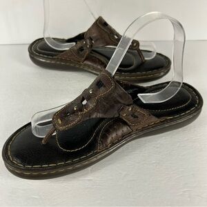 Stylish and comfortable brown leather sandals, perfect for casual outings. In good used condition