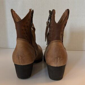 Born Damen Cowgirl Rodeo Beige Leather Zip Western Ankle Booties Women's size 6