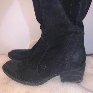 Born Leather Suede Tall Black Heeled Boots 6.5