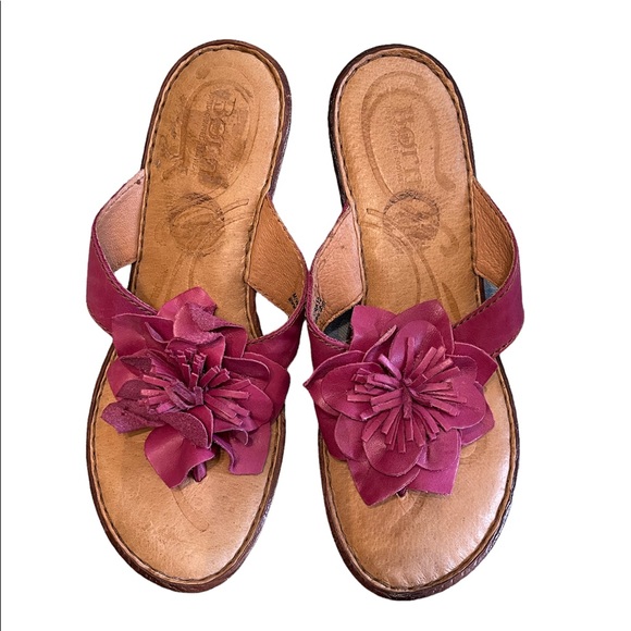 Gently used pink leather “thong” Born sandals 2.5” heel. Size 7 / 38. Some sticker residue on right shoe.