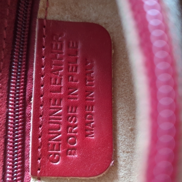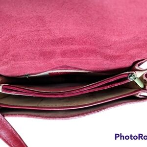 Genuine leather flap/pressed closure crossbody bag in wine/Burgundy.