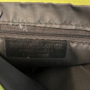 The bag features a durable leather exterior with a complementary black polyester lining, both designed to withstand daily use. A secure zip closure keeps items safe, while the adjustable strap offers a customizable fit up to 44 inches, ensuring comfort and hands-free convenience. Silver aluminum hardware adds a touch of elegance, and the bag charm adds a distinctive flair to this exquisite piece. Made in Italy, this bag exemplifies both style and craftsmanship.