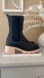 The Bos & Co Brunas Boot is a sleek, versatile boot that effortlessly blends style with functionality. Designed for those who need reliable footwear without sacrificing fashion, the Brunas is perfect for everyday wear during the cooler months. Elasticized Side Panels and Cushioned Insole add to the overall comfort. Black Waterproof Leather Upper Contrasts with Pinky Beige Lug Outsole. 2.25” at heel, .75” at front. Sized as 37 which is US 6 to 6.5. Mid Calf Height with 8” Shaft.