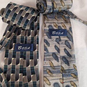Bosa 2 Set 100% Italian Silk Men Neck Ties Geometric Pattern 90s Tan Brown Blue