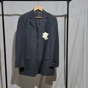 Men's new old stock Bosa wool suit. Grey pin stripe pants and blazer. There are a few tiny holes in the lining of the blazer, shown in the photos. This suit has never been hemmed. Size 40 Tall. New with tags. Vintage deadstock.