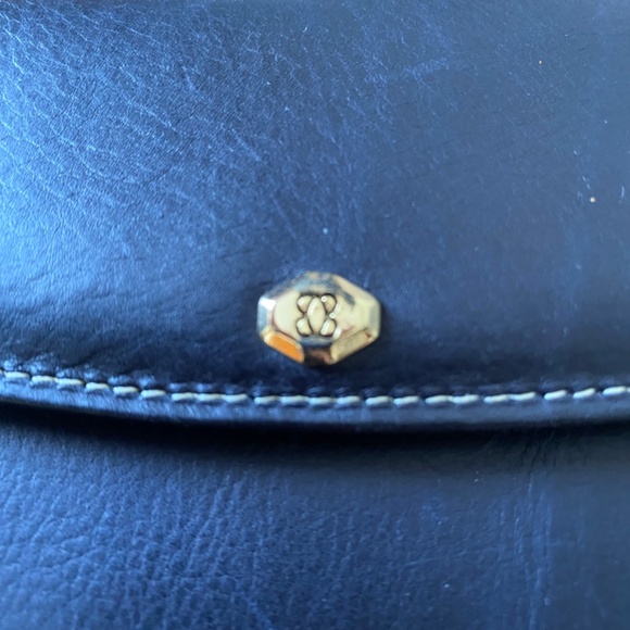 Gold detail on clasp that can fasten to 2 different dome fasteners depending on how full the wallet is.