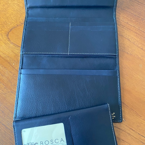 A gorgeous Bosca black leather envelope wallet with contrast white stitching