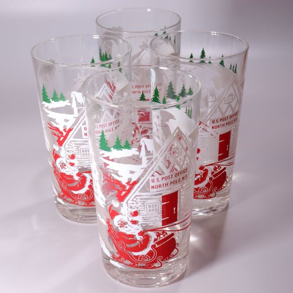 Boscul, peanut butter, glass, tumblers, santa, santa's workshop, north pole, vintage