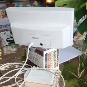 Bose speaker. I have 2 and one has to go. This is older machine with amazing crisp sound. Remote control needs new battery.