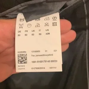 All of the outer pockets on this blazer from Boss are still sewn shut, leading me to believe that there’s a good possibility that it’s never been worn. The overall condition of the garment would certainly suggest this. It’s spotless. Flawless. Pristine. Double vented in the traditional European fashion and made with all the attention to detail that we’ve all come to expect from the label. An outstanding piece.