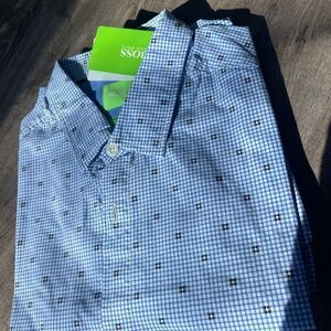 Boss Green C-Bersh Gingham Slim Fit Stretch Shirt-BLUE-Medium