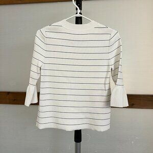 Boss Hugo Boss Fenella White Black Stripe Knit Pullover 3/4 Bell Sleeves Sz M