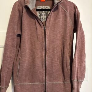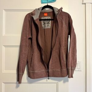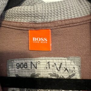 Boss (Hugo Boss), Men's Zip-Up Sweatshirt Hoodie, Brown / Grey, size M, side-entry pockets, Ribbed cuffs